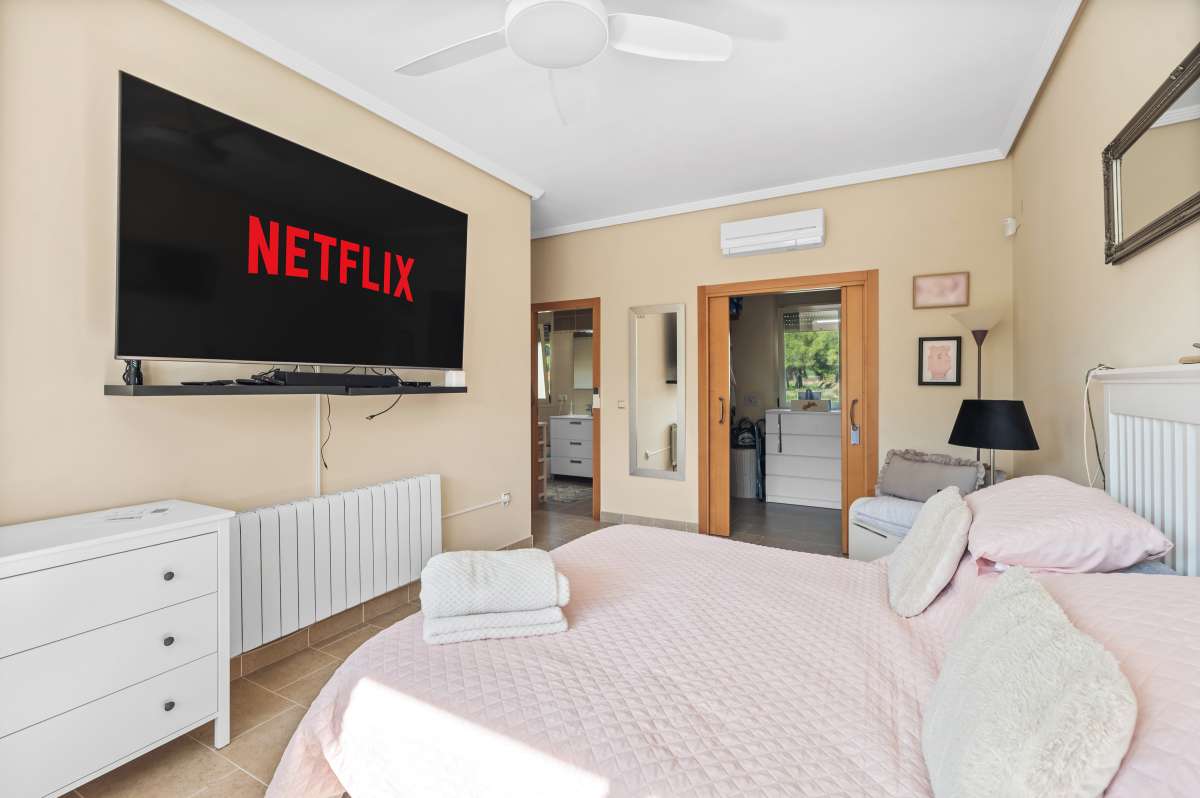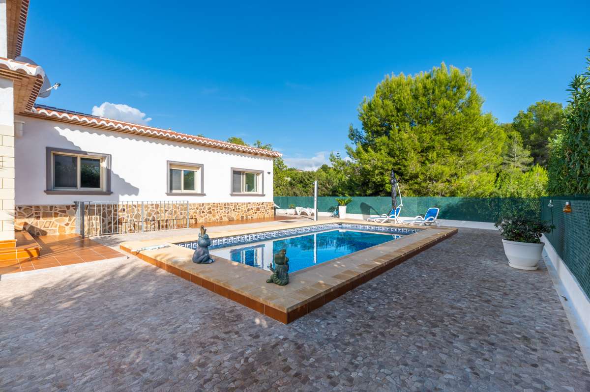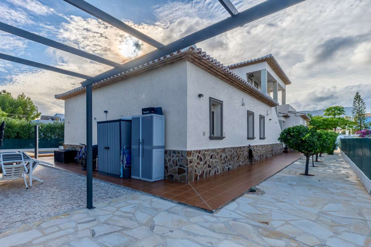 Villaen ble bygget i 2005. Den ligger i et av de roligste boligområdene i Calpe, og tilbyr den perfekte balansen mellom privatliv og komfort. Innen kort kjøretur kan du nå sandstrender, golfbaner, supermarkeder og utmerkede lokale restauranter. Området er kjent for sin naturlige skjønnhet, turstier og den ikoniske Peñón de Ifach, som tilbyr en autentisk Costa Blanca-livsstil omgitt av fred og natur.⟨BR⟩ ⟨BR⟩ Villaen er fordelt over ett hovednivå, med en ekstra uavhengig gjesteleilighet i øverste etasje, noe som gir stor fleksibilitet for familie eller gjester.⟨BR⟩ ⟨BR⟩ Hovednivået har et lyst, fullt utstyrt uavhengig kjøkken, en romslig stue-spisestue med store vinduer som fyller plassen med naturlig lys, og direkte tilgang til en solrik terrasse og det private svømmebassenget.⟨BR⟩ ⟨BR⟩ Langs korridoren finner du to soverom og ett bad, pluss en hovedsuite komplett med eget bad og en walk-in garderobe, som tilbyr komfort og funksjonalitet.⟨BR⟩ ⟨BR⟩ Gjesteleiligheten, som nås via en separat inngang, inkluderer en koselig stue-spisestue med åpent kjøkken, et soverom med eget bad og tilgang til en privat terrasse med panoramautsikt over fjellene. Calpes skyline og et glimt av havet – det perfekte tilfluktsstedet for gjester eller som en uavhengig utleieenhet.⟨BR⟩ ⟨BR⟩ Utendørs tilbyr villaen en privat garasje, ekstra parkeringsplass og et vakkert privat basseng omgitt av terrasser som er ideelle for avslapning under middelhavssolen.⟨BR⟩ ⟨BR⟩